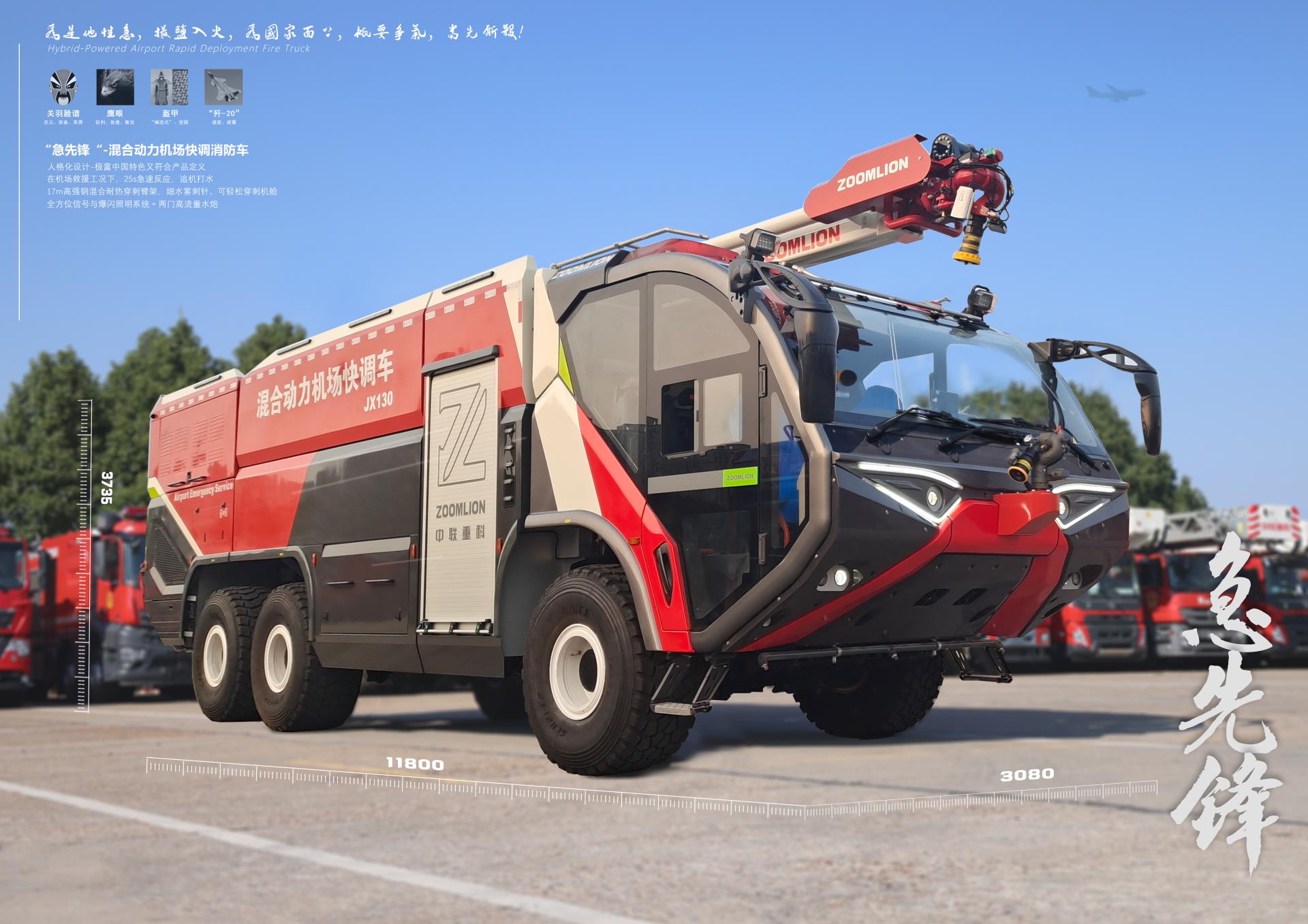 此次大賽中,中聯(lián)重科混合動力機場快調(diào)車獲得產(chǎn)品組唯一金獎,其基于我國應(yīng)急救援“全災(zāi)種、大應(yīng)急”的背景開發(fā),是國內(nèi)首創(chuàng)混合動力的機場快調(diào)消防車,技術(shù)水平全球領(lǐng)先。該產(chǎn)品結(jié)合電動的瞬時爆發(fā)力和燃油的長時間持續(xù)滅火救援,瞬時加速時間大幅縮短,同時配備伸縮式+折疊式復(fù)合臂架,配置了一鍵出水、一鍵展(收)臂等智能化技術(shù),功能全面、實戰(zhàn)性強;在非應(yīng)急工況下可使用清潔能源,實現(xiàn)能量回收,綠色低碳、節(jié)能環(huán)保。中聯(lián)重科還將臉譜、傳統(tǒng)盔甲-編連式等傳統(tǒng)文化元素融入車型設(shè)計,通過設(shè)計賦予產(chǎn)品“忠義、耿直、英勇”的獨特個性,進一步提升產(chǎn)品價值。