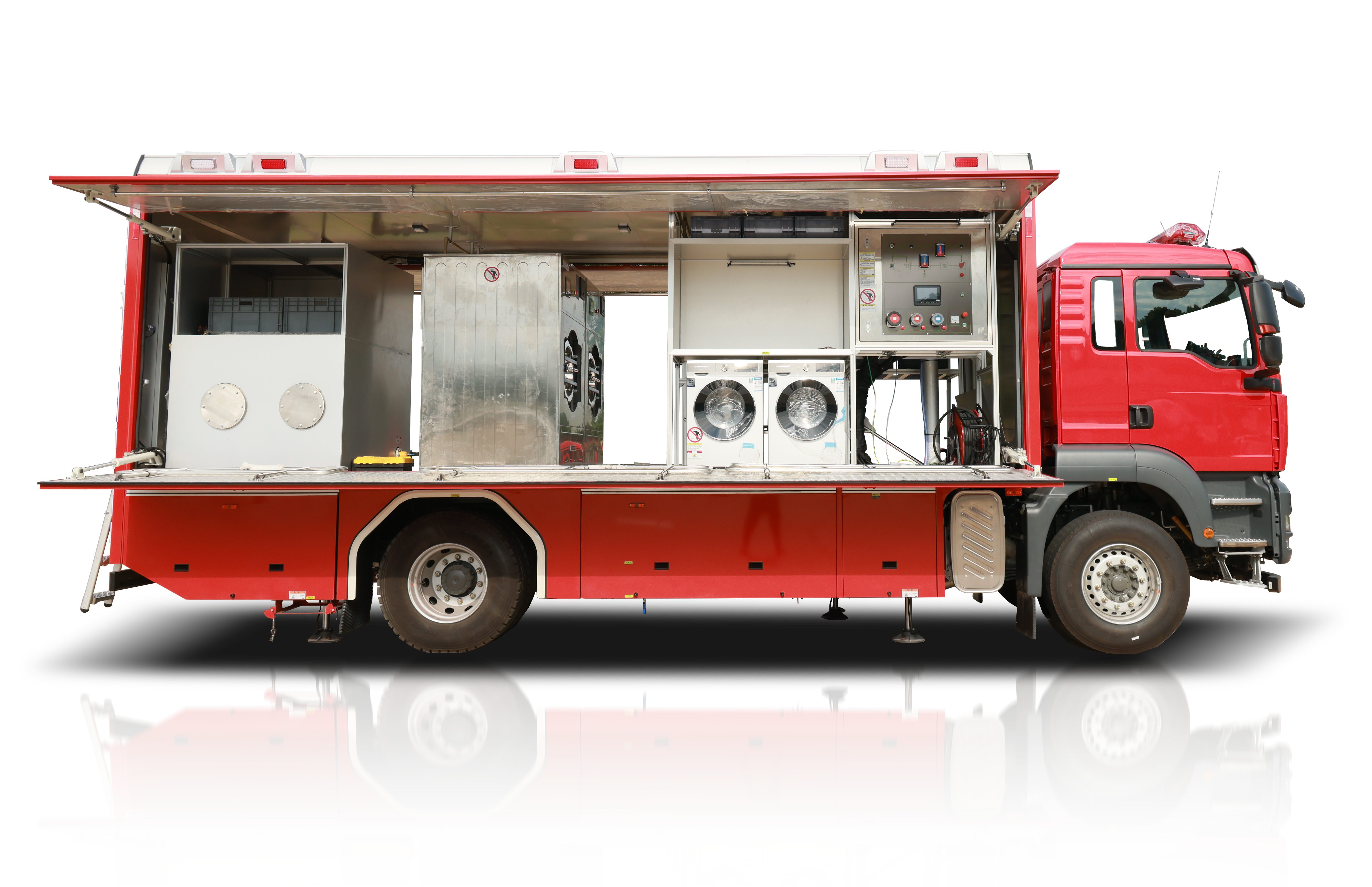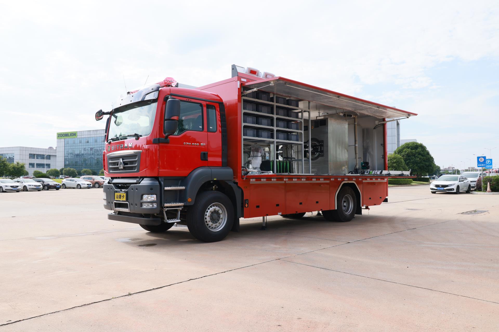 ? ? ??中聯(lián)牌QC20消防車是中聯(lián)重科與湖南省消防救援總隊(duì)聯(lián)合研制的全新被服洗滌消防車。整車性能優(yōu)越、操作方便、適應(yīng)性強(qiáng),具備發(fā)電、供水、污水收集、照明等自我保障能力,集洗脫、烘干等多功能于一體,適用于大規(guī)模、長(zhǎng)時(shí)間、遠(yuǎn)距離、高頻次的應(yīng)急救援和演練的后勤保障。擁有近十項(xiàng)專利及多項(xiàng)創(chuàng)新技術(shù)。