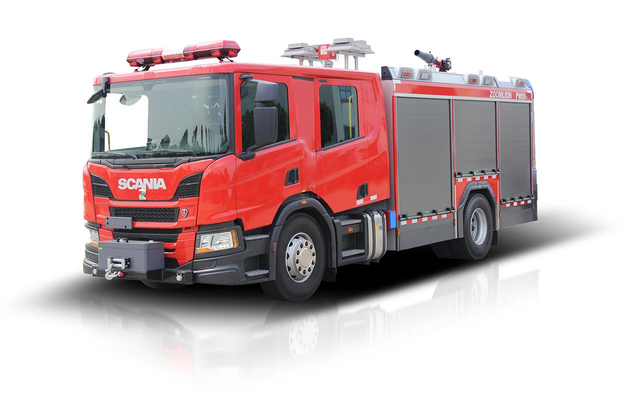 ? ? ? ?PM55城市主戰(zhàn)消防車采用原裝進口斯堪尼亞P410改裝, 底盤作為車輛主要組成部分,除了行駛時承載以外,還是上裝部分的載體,同時為滅火系統(tǒng)正常工作,可靠、平穩(wěn)地傳遞動力。容罐作為車輛的基礎件,用于裝載水及泡沫滅火劑。滅火系統(tǒng)由消防泵、泡沫混合系統(tǒng)、消防炮及管路、閥門等組成。為適應消防滅火實戰(zhàn)需要,該車既可以使用車頂消防炮滅火,也可以使用水帶連接直流、開花水槍或泡沫槍進行滅火;同時可以利用車上攜帶發(fā)電照明系統(tǒng)對救援現(xiàn)場提供電力保障和照明;車輛還隨車攜帶了大量搶險救援器材用于搶險救援工作。
